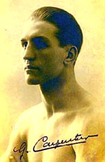 Увлечение боксом пришло к Жоржу в четырнадцать лет. Но любительский ринг не привлекал юношу. Судьба была благосклонна к нему, и в то время, когда на профессиональный ринг допускали спортсменов не младше двадцати одного года, Карпантье, минуя правила, сумел выйти на него в семнадцать лет. В возрасте двадцати семи лет (1921) Жорж рискнул принять участие в поединке с чемпионом мира в тяжелом весе Дж. Демпси. Джек являлся первым обладателем титула мирового чемпиона в своей весовой категории среди профессиональных бойцов. Это звание он завоевал в 1884 г. в поединке с Г. Фулджемсом. Прошло семь лет, прежде чем Р. Фицсиммонс смог отобрать у него титул, отправив Джека в нокаут в 13-м раунде. Более старший и опытный Демпси без особого труда выиграл поединок, нокаутировав Карпантье в 4-м раунде. Неудачи продолжали преследовать Жоржа. Через два года после поражения в "матче века", прошедшего в Джерси-Сити (США), где он встречался с Демпси, французский боксер проигрывает звание чемпиона Баттлингу Сики, настоящее имя Луи Фаль (1897-1925). Победа досталась Баттлингу в 6-м раунде после того, как он отправил в нокаут Карпантье. Но титул принадлежал Сики недолго. На одном из турниров, где он принимал участие в качестве секунданта своего друга, сложилась ситуация, в результате которой Бат-тлинг был дисквалифицирован и лишен звания чемпиона мира (за недостойное поведение по отношению к секунданту соперника). Мировое первенство было возвращено Жоржу Карпантье, но по решению суда титул вновь перешел к Сики. |